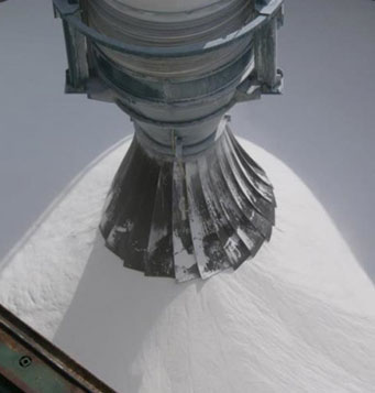 The reduction in the product discharge velocity and the amount of induced air minimizes dusting at the discharge.