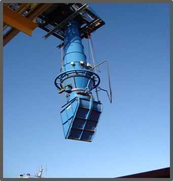 The Cascade Chute is a unique patented design, consisting of oppositely inclined cones, supported by straps and surrounded by an independent wind shroud.