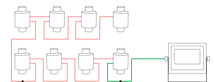 - Interconnection without any junction box through double-connectors from load cells to weight indicator directly